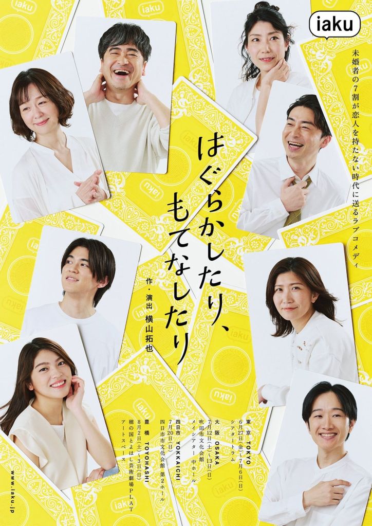 横山拓也氏による作・演出のiakuの新作公演は、狭い人間関係での様々な恋愛模様が描かれ、チラシで「ラブコメディー」と銘打っているのだが、恋愛モノと言うよりは、「ひと癖ある人たちしか登場しない、恋愛要素も含んだ人間関係の悲喜こもごも」と言ったところ。