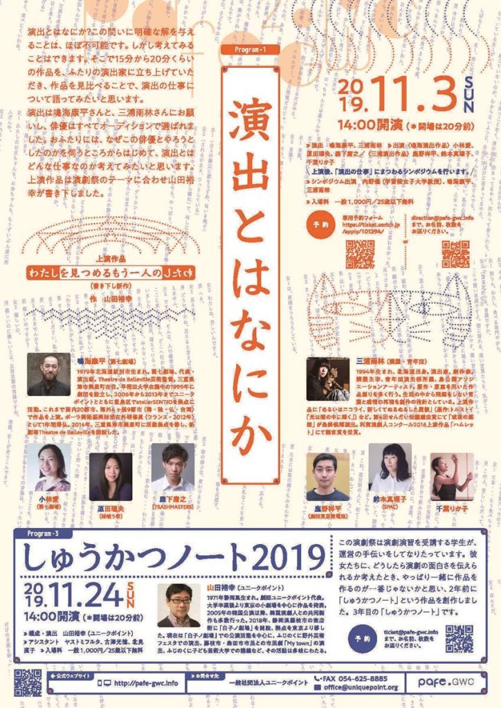 協力 城崎国際アートセンター(豊岡市)、劇団俳優座、はえぎわ、エスアーティスト、SPAC-静岡県舞台芸術センター、青年団、六尺堂、atm、人の味、officecassini